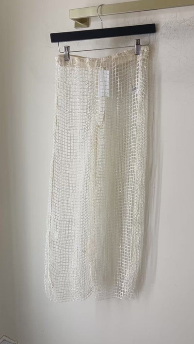 The Marbella Sequin Net Pants bring a touch of glamour to resort dressing, featuring a sheer grid-net design with subtle sequins that shimmer in the light—perfect as a swim coverup or layered over shorts for effortless vacation style.
